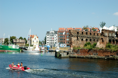 De jachthaven van Gdansk is midden in het centrum van de stad, schuin tegenover de Krantor (toren met de eerste kraan, door gevangen aangedreven wiel kon tot 2 ton tillen), een deel van het omliggende gebied is nog niet ontwikkeld.