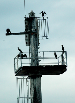 Op het havenhoofd passeren we een grote kolonie Aalschovers, die hadden we sinds het Lauwersmeer nauwelijks nog gezien, bij gebrek aan tropische dieren wat plaatjes van de Alken.