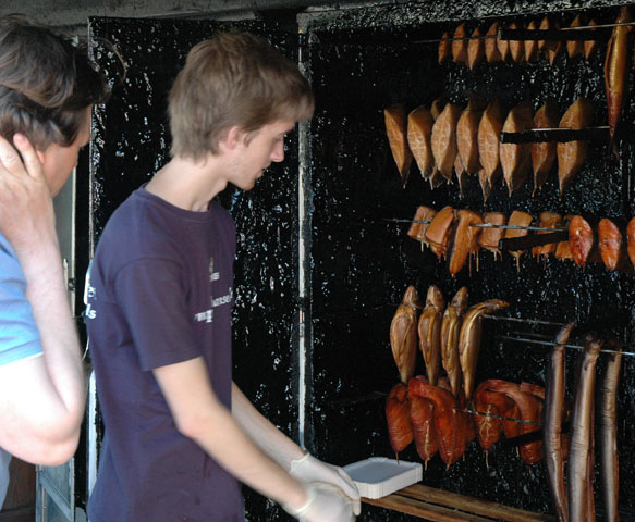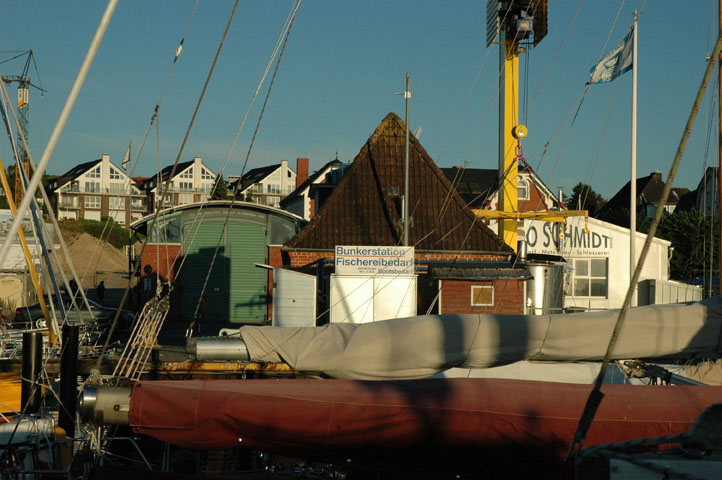 We vinden een mooie plek met zicht op de dieseltanklocatie en eten wederom tapas bij hetzelfde restaurant dat de keuken zo mooi lang open heeft. Aan de haven zit een mooi zelfbedieningsvisrestaurant van goede kwaliteit, altijd overvol, daar willen ze ons rond 21:00 eigenlijk niet meer hebben. We mogen nog maar deel van de kaart bestellen en krijgen dan ook nog te horen dat het minstens 30 minuten duurt. Dat is helemaal niet erg, maar we voelen ons niet welkom meer en gaan weer weg. Bij het bunkerstation kun je ook het havengeld betalen. Op maandag vertrekken we rond 5:30, op naar Cuxhaven, we gaan gebruik maken van het weergaatje op dinsdag en woensdag. Het bunkerstation wordt bedreven door de visserijvereniging, je kunt er verse zalm krijgen uit eigen zeekwekerij.