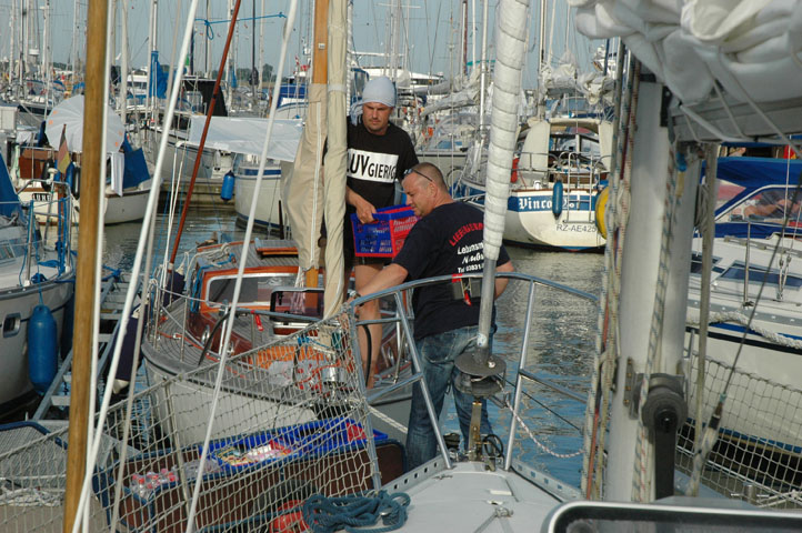 Voor vertrek bunkeren we voldoende diesel voor de hele reis (denken we). Het is circa 60 uur varen naar huis en we hebben voor bijna 30 uur diesel aan boord, want onze 17 hp Volvo Penta verbruikt tussen de 1.5 en 1.75 liter per uur. Natuurlijk gaat het lukken om de helft van de tijd te zeilen…