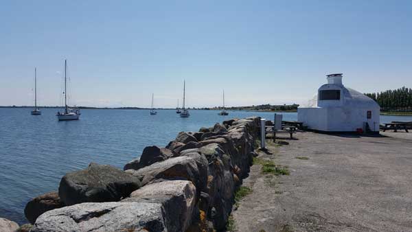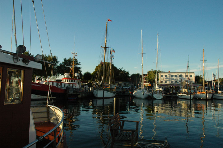 Om ongeveer 20:00 komen we aan bij Laboe. Op de heenreis hebben we ervaren dat de mooie perfecte jachthaven dan al overvol is en in de verenigingshaven nog plaatsen zijn. Daar is ook het bunkerstation dus gaan we daar naar toe.